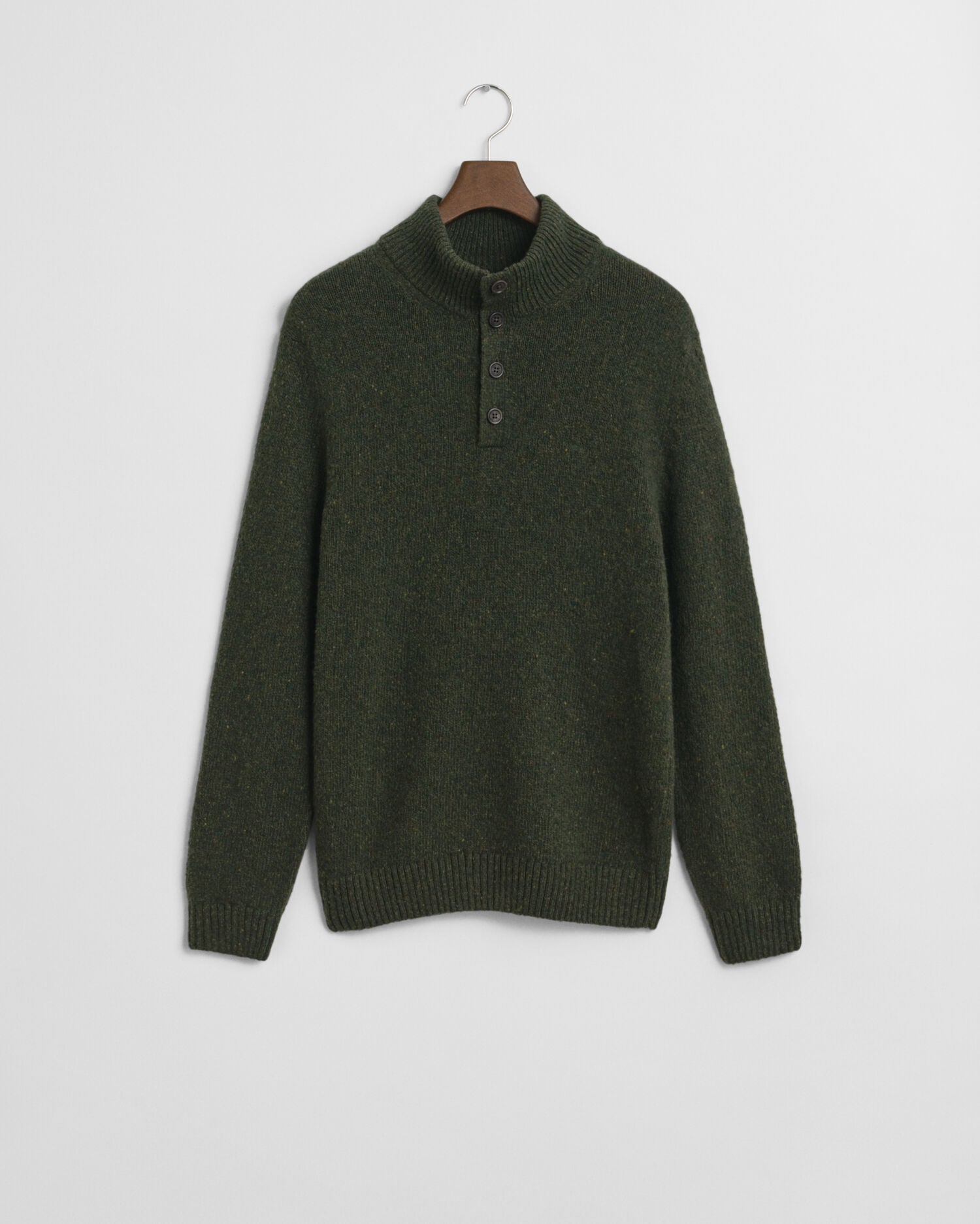 The nepps yarn from this soft Italian wool blend gives a speckled effect to this knitted sweater. Made for a regular fit, this sweater has a half-buttoned collar with corozo buttons, and features rib endings and a subtle logo embroidered at the chest.