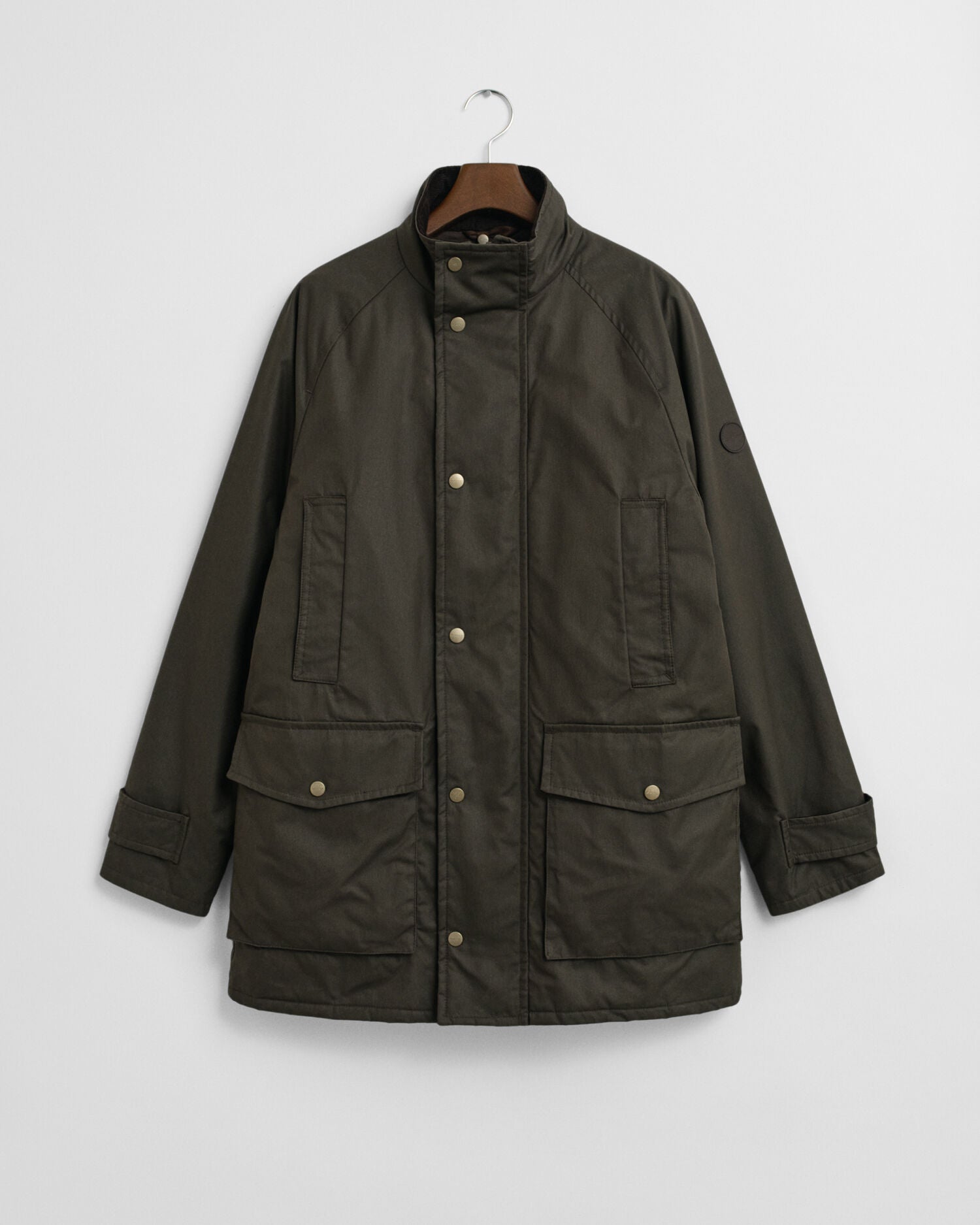 This double decker jacket is a classic design. Cut for a regular fit and finishing just below the knees, the jacket features heavy front zip closure beneath the placket, a stand collar and adjustable sleeve cuffs. Designed with raglan sleeve inserts, the jacket is also detailed with lower patch pockets and our signature locker loop at the back. The interior design is fully lined and features a detachable vest and two pockets.