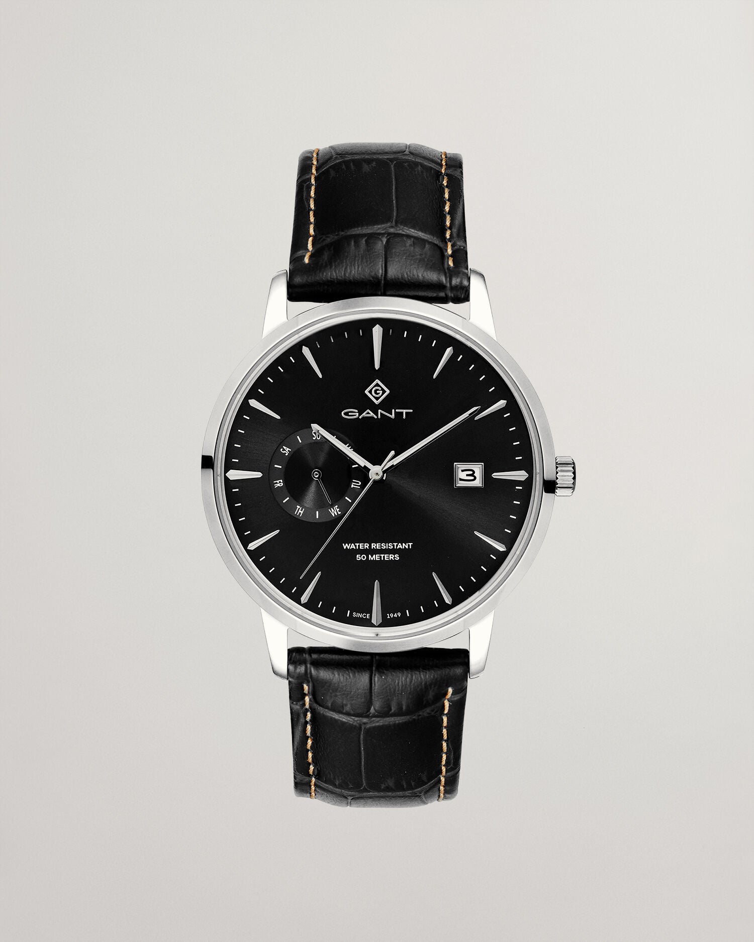 Sporty and classic, our men's time collection combines innovation with superior craftsmanship to create keepsakes inspired by our Never Stop Learning credo. The East Hill Wristwatch is made from mineral glass, stainless steel, and Italian leather, and features three hands and a circular day and a date function.