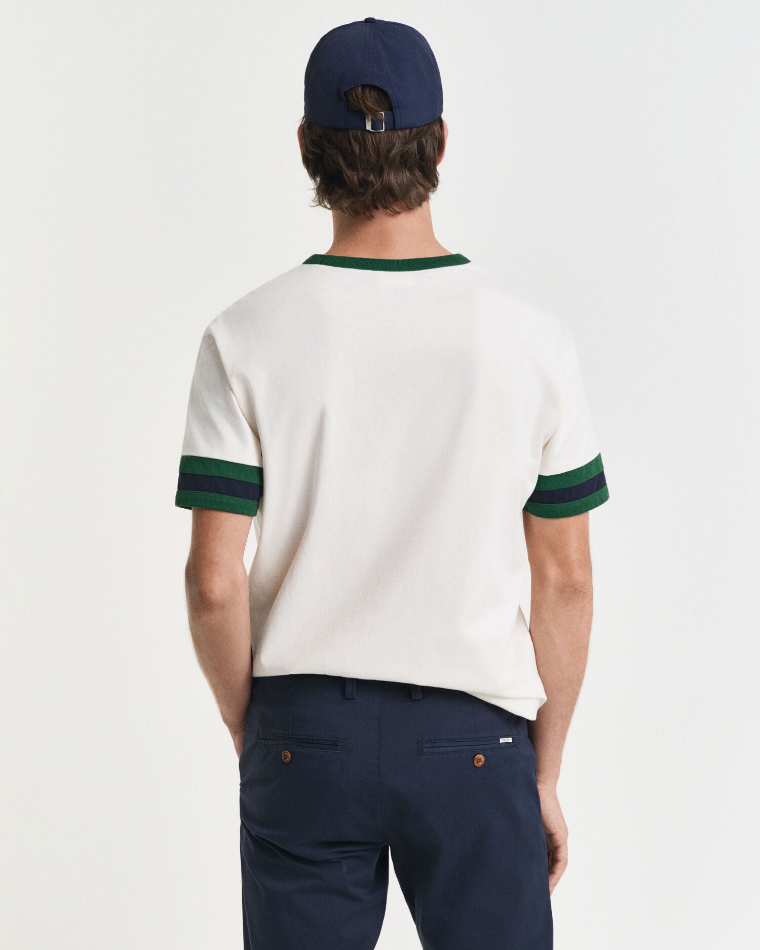 Crafted from 100% cotton, this T-shirt has been heavily garment-washed for a softer hand-feel. Cut for a regular fit, the design features a crew neck and short sleeves with contrast color detailing. It features a seasonal branded graphic printed at the chest in a cracked-effect quality.