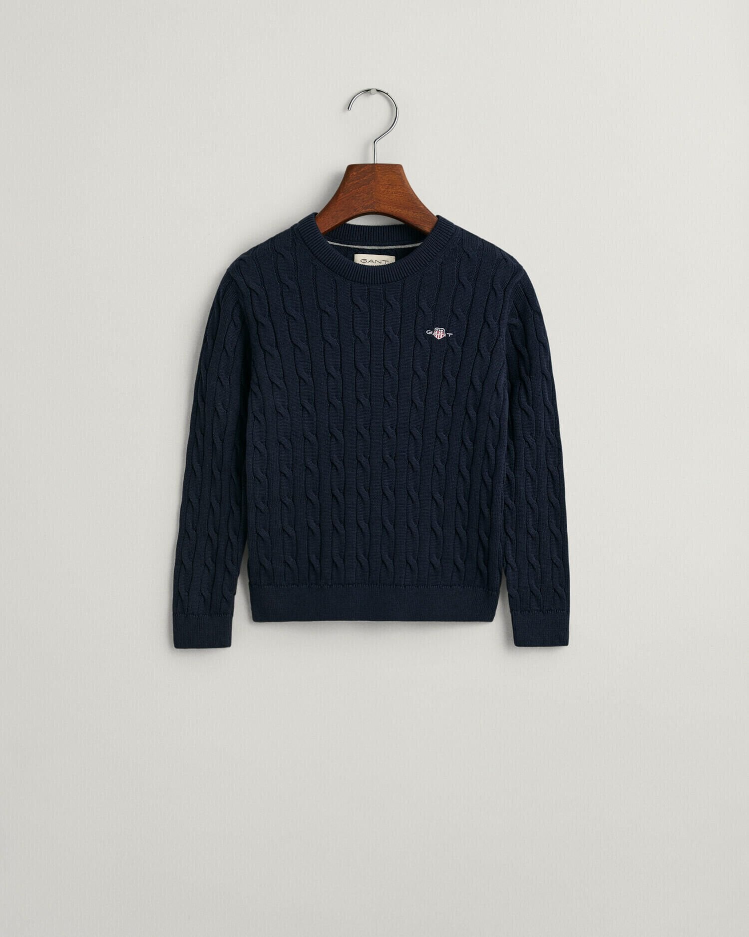 Kids Shield Cotton Cable Knit Crew Neck Sweater