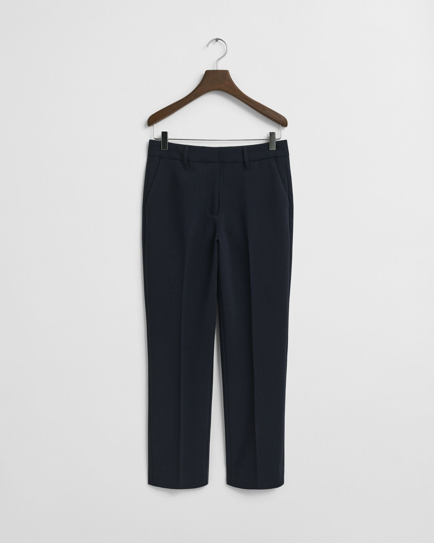 Timelessly versatile, these slacks are crafted in a soft blend of certified viscose, recycled polyester and a touch of comfort stretch. Slim over the hips, these pants have a mid-rise waist and a cropped leg. Details include front slanted pockets, back welt pockets and creases at the front and back. They fasten with a zip and a hook-and-bar closure.