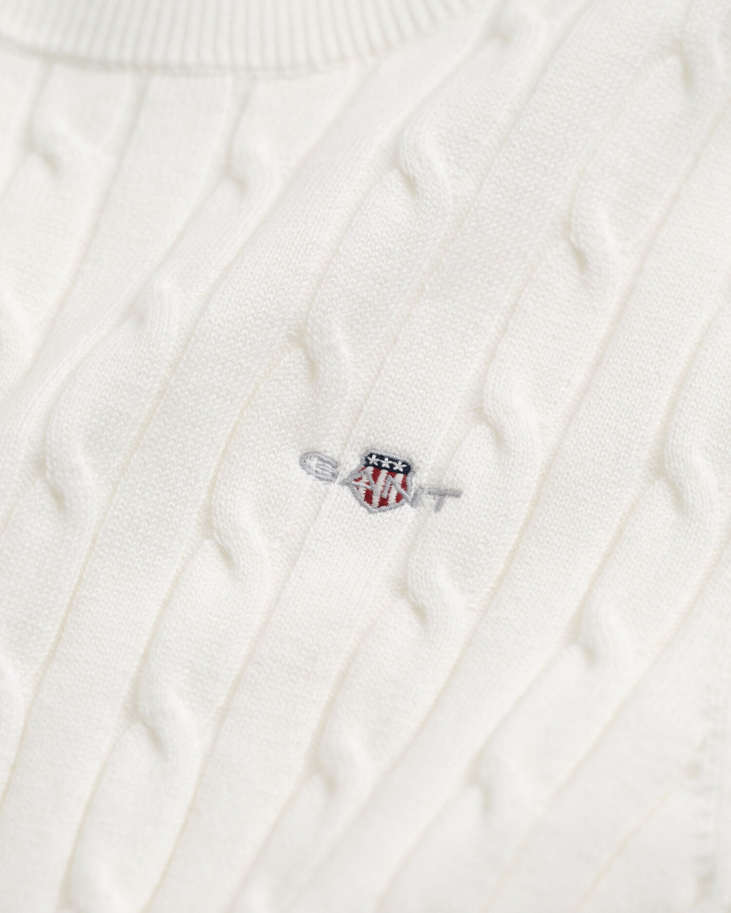 Crafted from a soft cotton blend with extra stretch, this cable knit sweater is designed with short sleeves and a slim fit. The design features ribbed detailing and the neck, hem and sleeve cuffs and a Archive Shield embroidery at the chest.