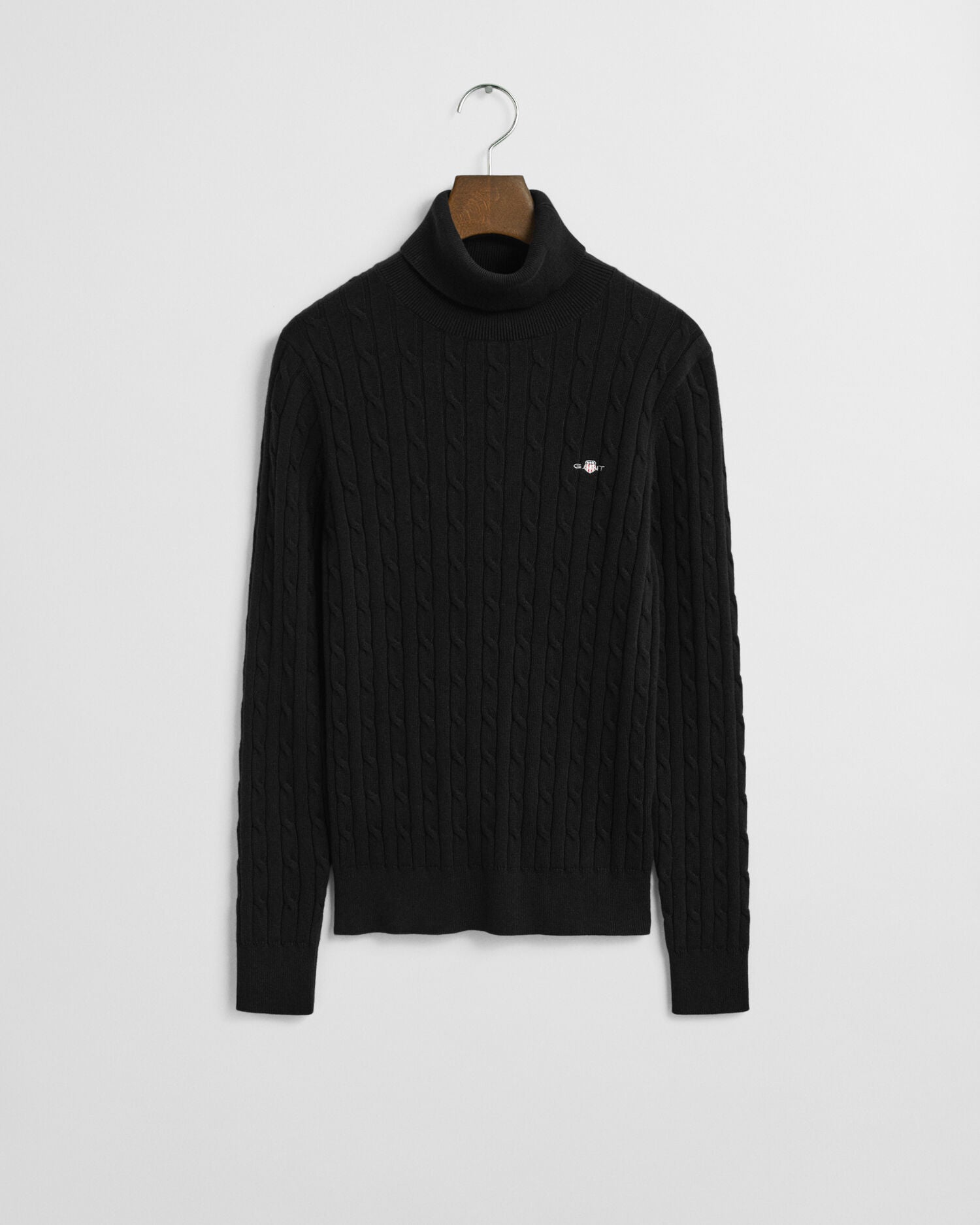 An American sportswear classic, the cable knit sweater has roots with the Aran Islands and Irish fisherman, but has been adored by everyone from Hollywood film stars to boarding school students around the world. Crafted from a soft cotton elastane blend for a slim yet stretchy fit, our version keeps it crisp and versatile with ribbed details, a turtleneck, and our signature shield graphic embroidered at the chest. Plus, in a range of neutrals and vibrant seasonal hues, you can justify one in every color.