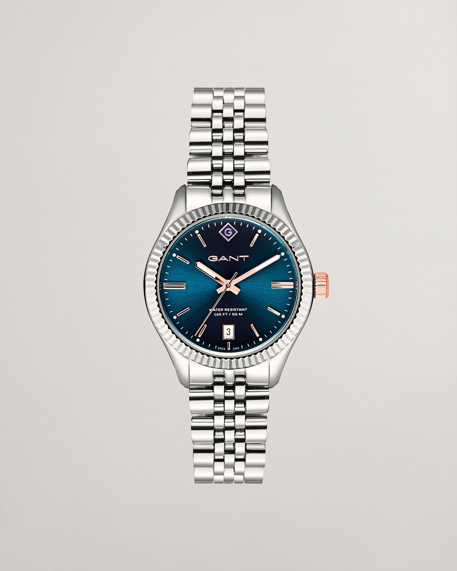 A watch is more than an accessory. Using luxe materials, we've crafted a women's collection in tribute to our history of iconic American sportswear. The Sussex Wristwatch is made in stainless steel, mineral glass, and leather, and features three hands and date.
