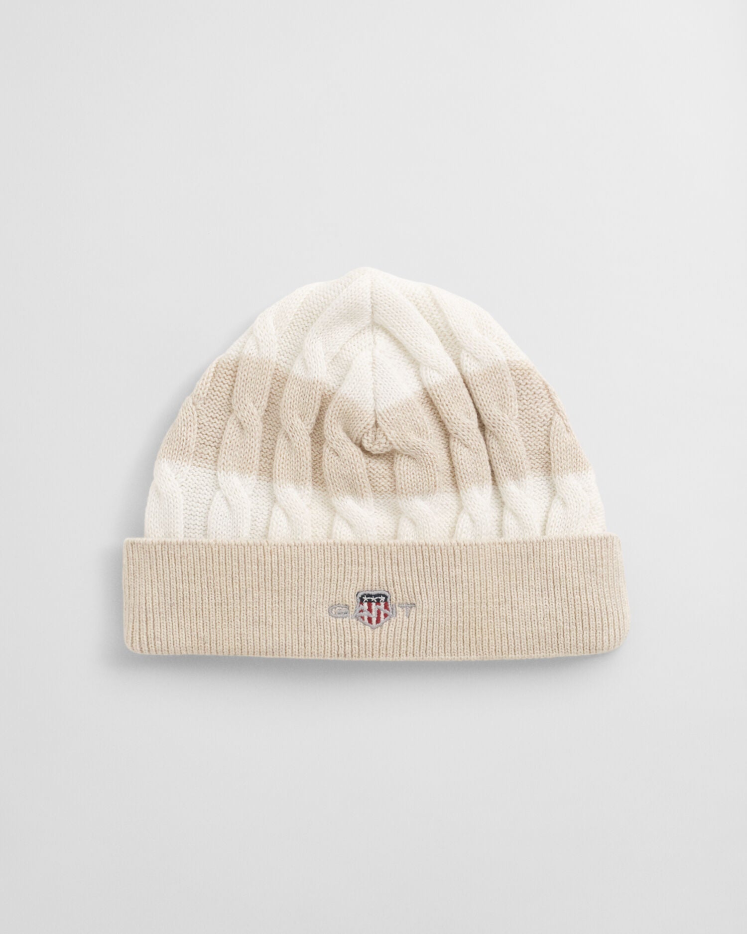 Crafted from organic cotton, this cable knit beanie is designed wth a regular fit and an all-over striped print. it features a ribbed fold up and a shield graphic embroidery at the front.