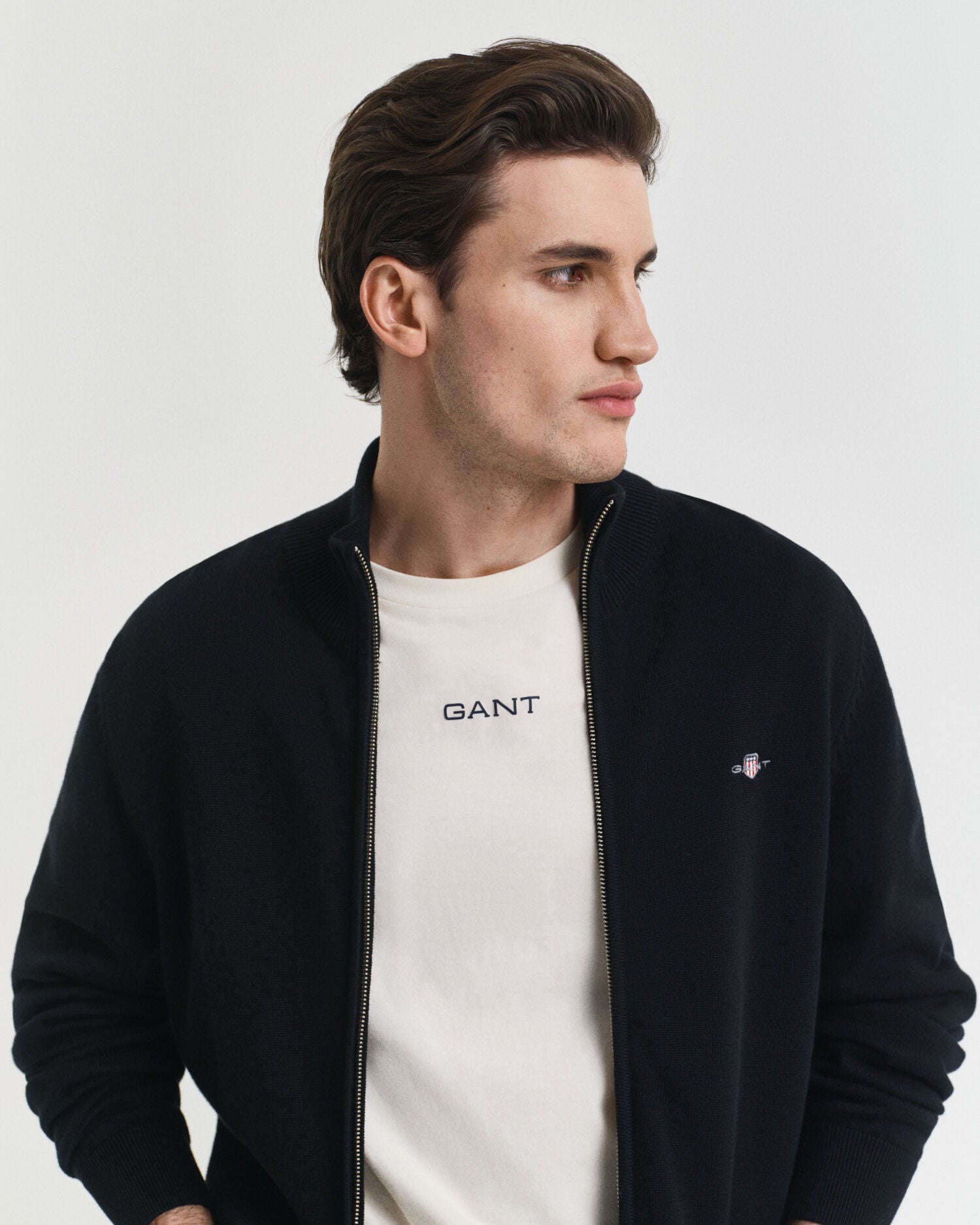 Crafted in medium-weight cotton and cut in a regular fit, this full-zip cardigan features a shield graphic embroidered at the chest.