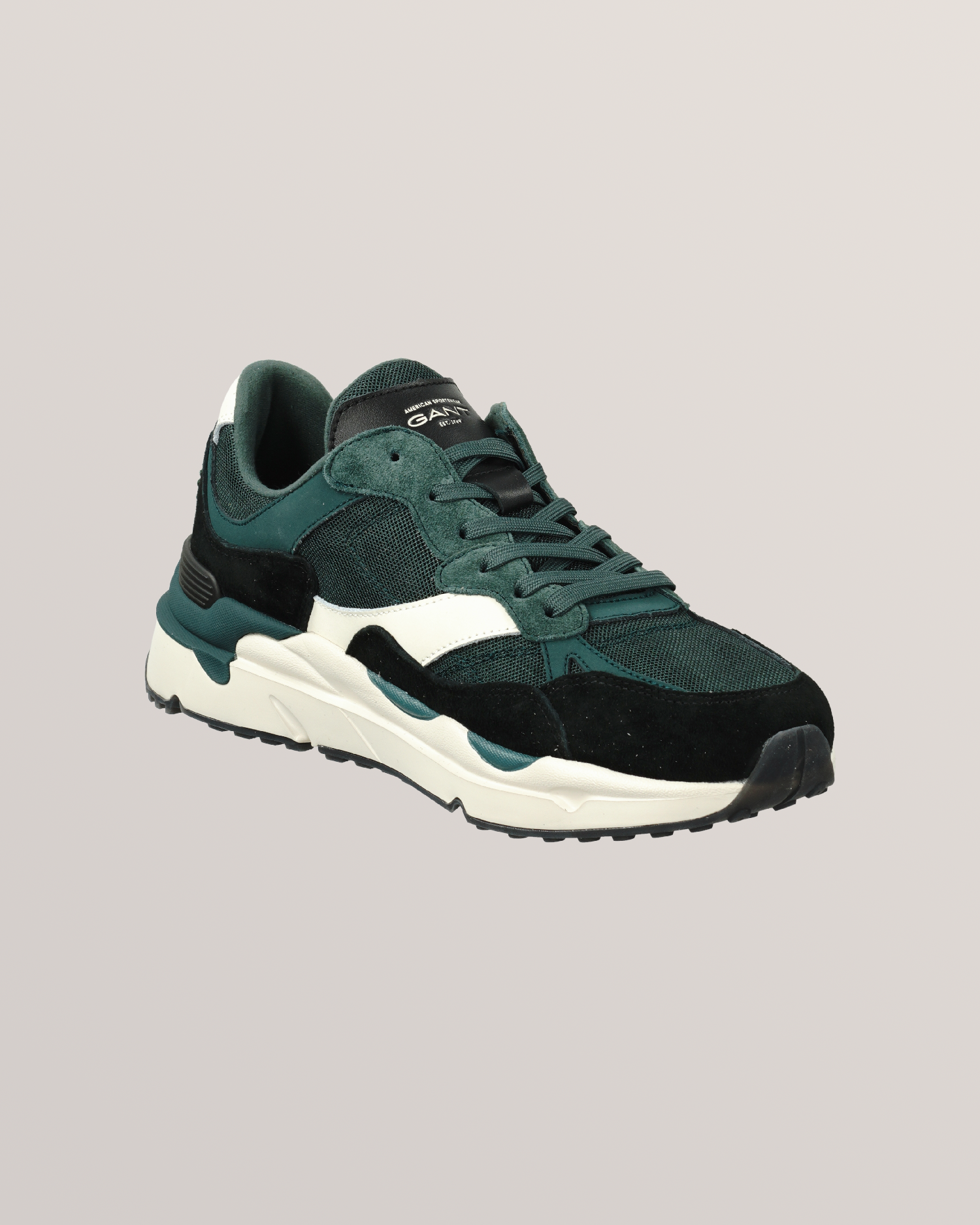 Baskets de course au style imposant, déclinées dans une combinaison de couleurs et de matières tendance. La tige, mélange de nubuck et de mesh, présente une coupe originale et un lettrage discret. Doublure textile et semelle intérieure en matériau recyclé. En achetant ce produit, vous soutenez la fabrication responsable du cuir par le Leather Working Group.