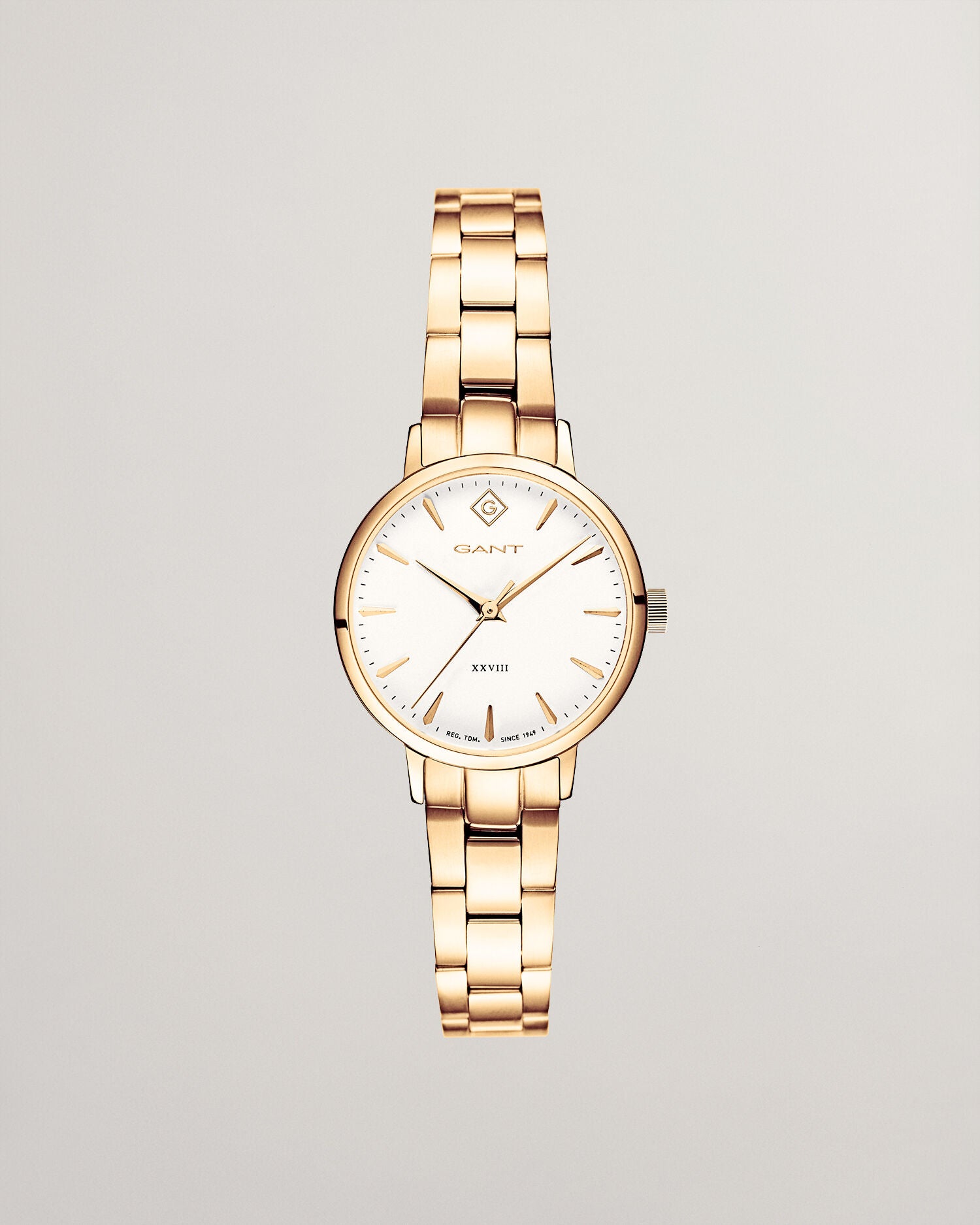 A watch is more than an accessory. Using luxe materials, we've crafted a women's collection in tribute to our history of iconic American sportswear. The Park Avenue 28 Wristwatch is made in stainless steel with gold ion plating and mineral glass, and features three hands for an understated, feminine look.