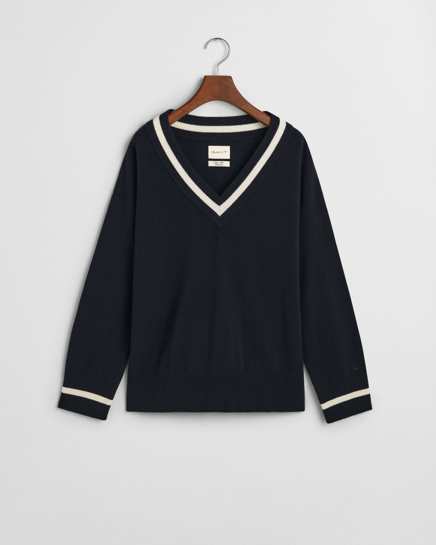 Superfine Lambswool Contrast V-Neck Sweater