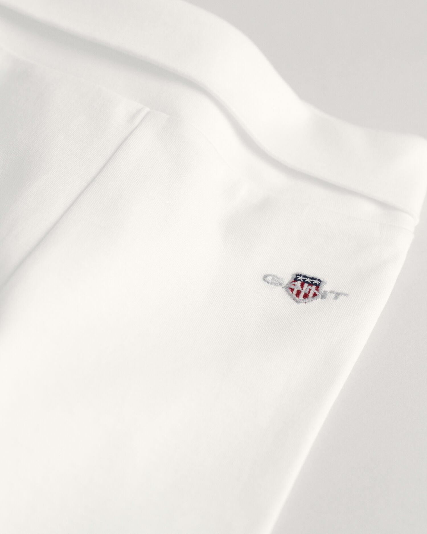 Crafted from 100% organic cotton in a soft interlock quality, these regular fit, unisex leggings are perfect for active little ones. Made for ultimate comfort and mobility, these leggings feature leg cuffs and a waistband that can be extended or folded for an adjustable fit. They are complete with a small-scale shield graphic embroidered at the left leg.