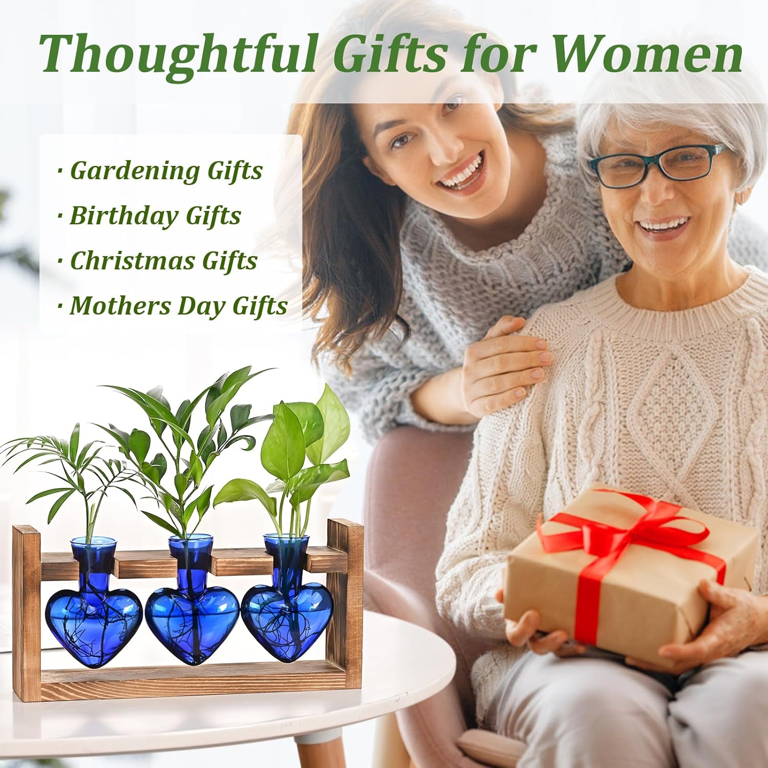 • Best Flower Lover gifts for Women: Constructed from durable solid wood and expertly crafted hand blown glass featuring assorted colored bulb designs, this propagation holder is both sturdy and aesthetically pleasing, making it perfect for daily use and ideal for planting cuttings. It makes a thoughtful gift for anyone, including men, women, girls, moms, friends, and teachers, and is suitable for occasions such as Mother’s Day, birthdays, housewarmings, Christmas, and graduation parties.