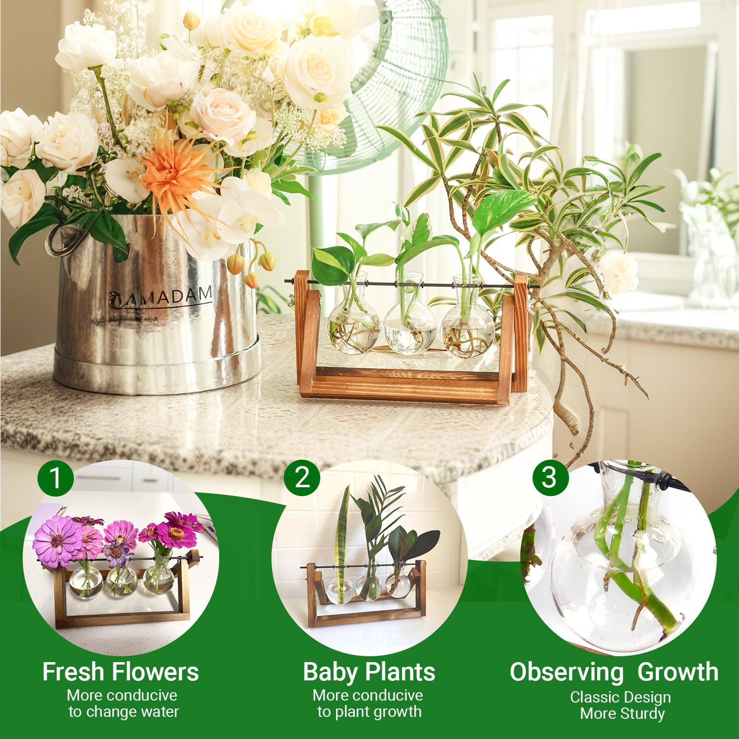 • Best Flower Lover gifts for Women: Constructed from durable solid wood and expertly crafted hand blown glass featuring assorted colored bulb designs, this propagation holder is both sturdy and aesthetically pleasing, making it perfect for daily use and ideal for planting cuttings. It makes a thoughtful gift for anyone, including men, women, girls, moms, friends, and teachers, and is suitable for occasions such as Mother’s Day, birthdays, housewarmings, Christmas, and graduation parties.