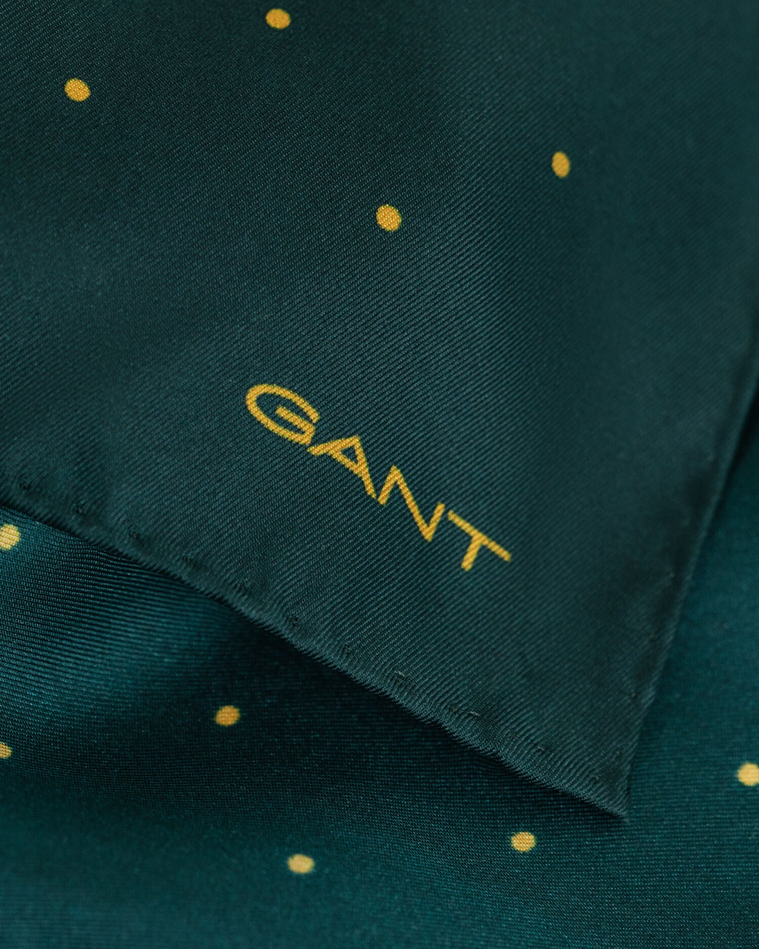 Crafted out of 100% silk, this pocket square is designed with an all-over polka dot pattern. It is detailed with a logo printed at the bottom corner.
