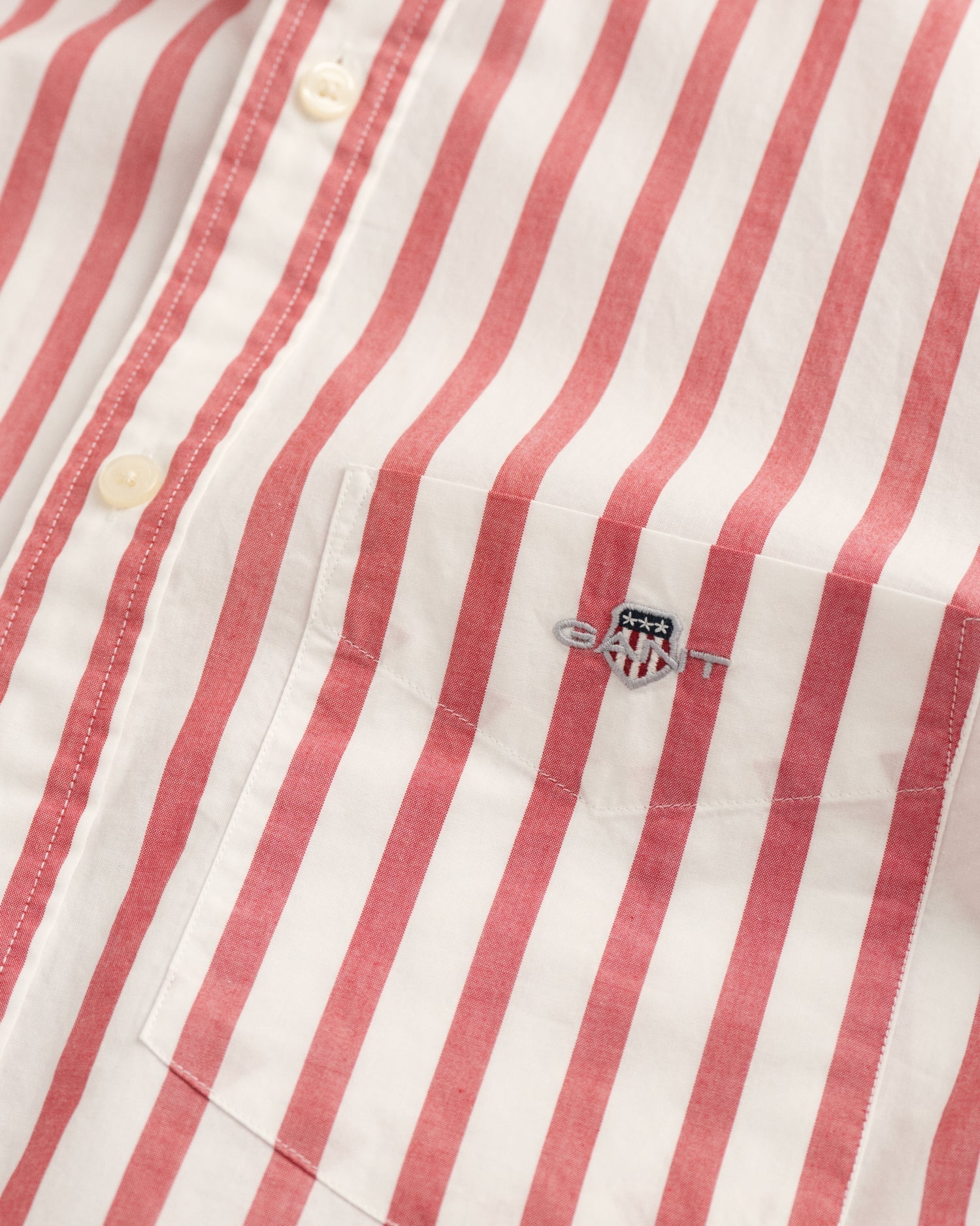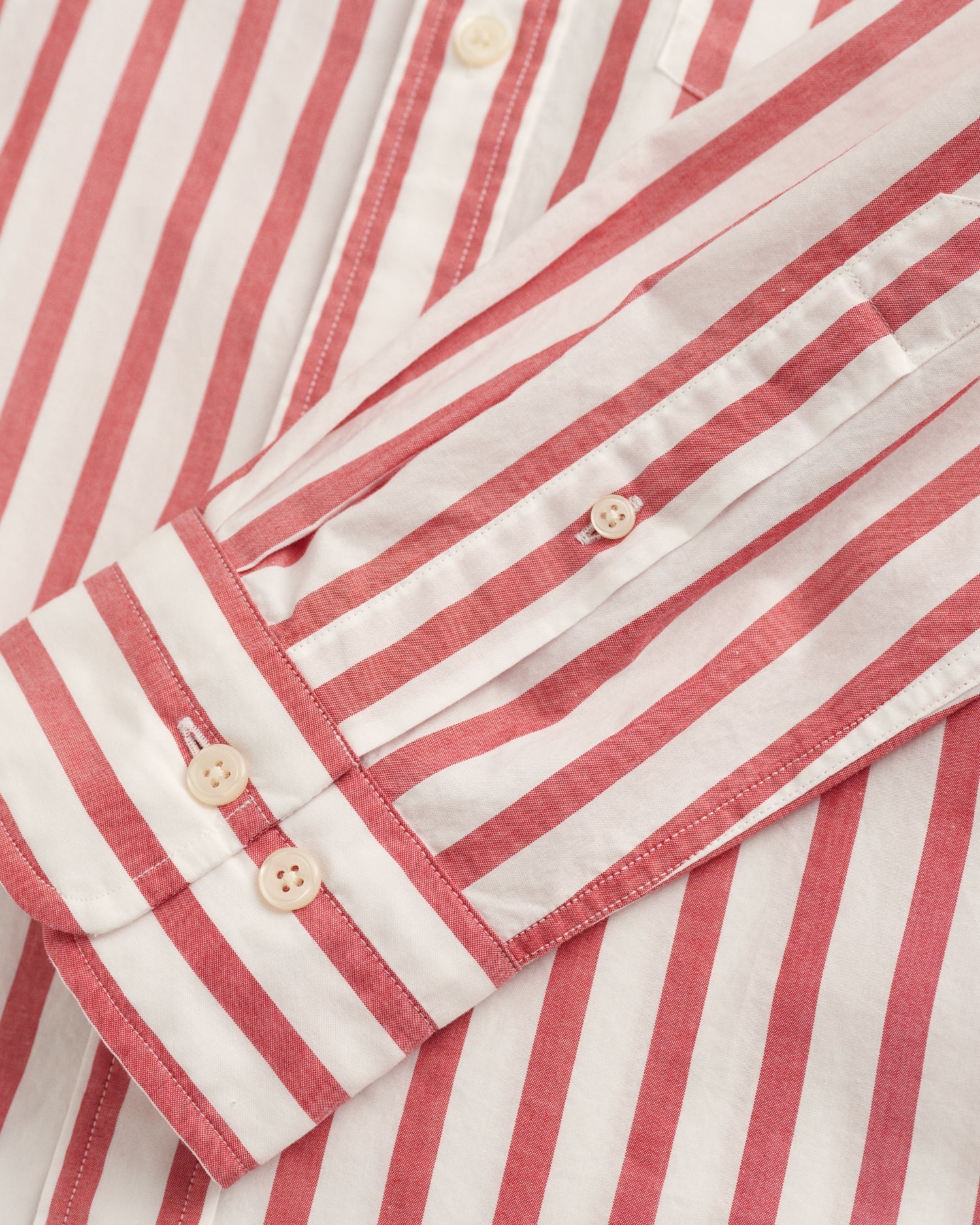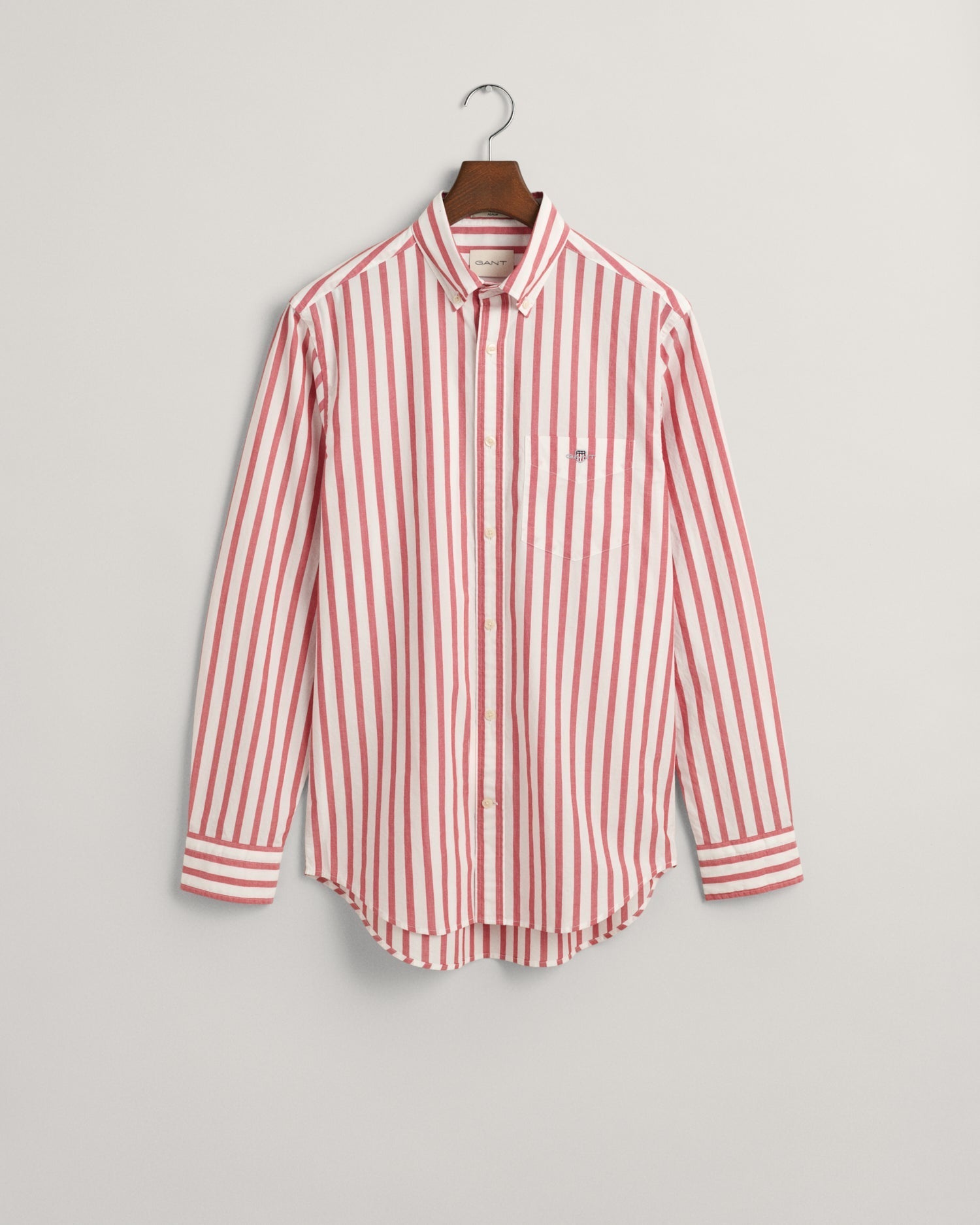 Men's Regular Fit Wide Striped Poplin Shirt - RUBY RED