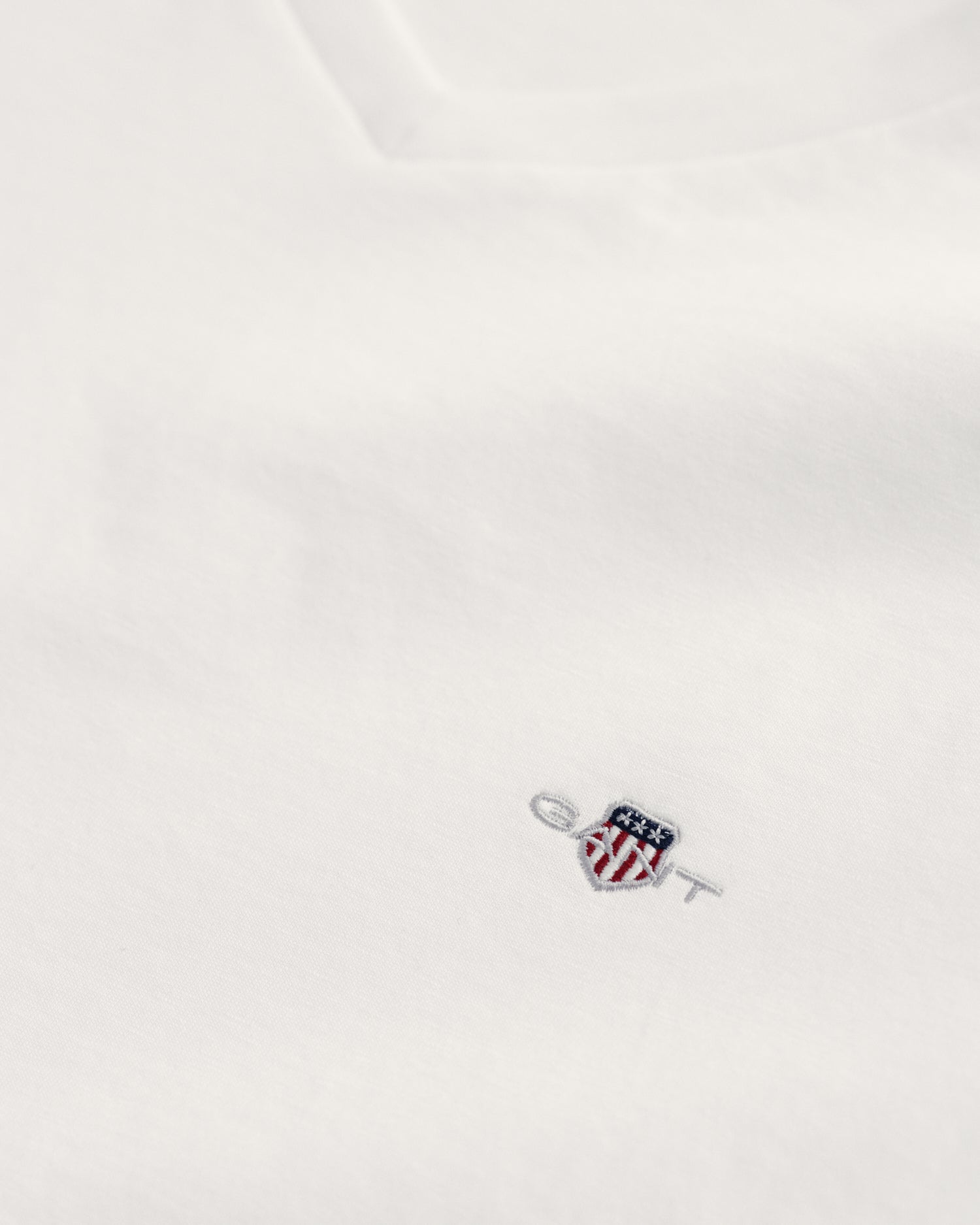 Featuring a small-scale shield graphic embroidered at the chest, this T-shirt has a V-neckline with soft ribbing for comfort. An essential part of any ensemble, wear it under your favorite knitwear, outerwear or paired with jeans and chinos.