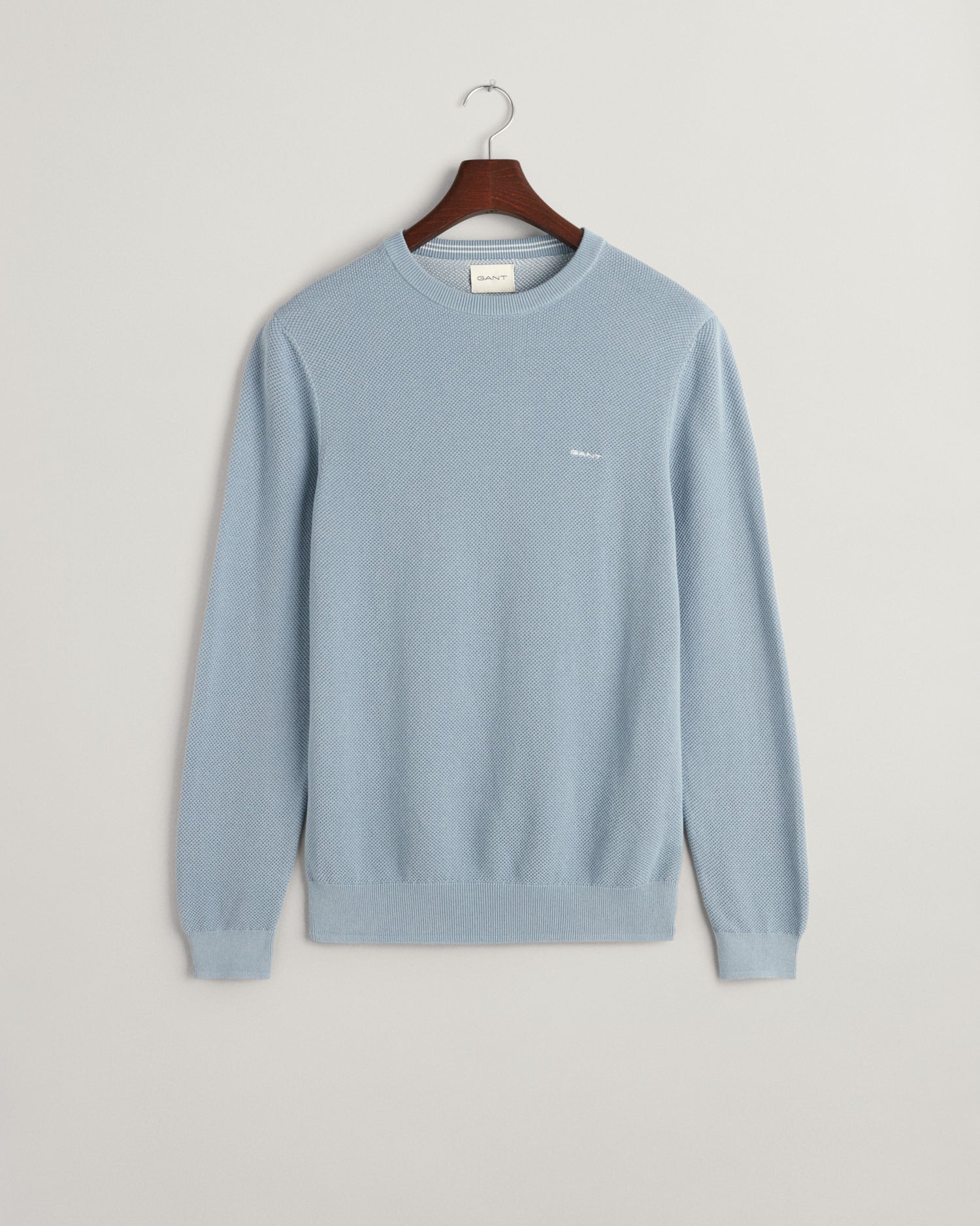 Men's Cotton Piqué Crew Neck Sweater - DOVE BLUE