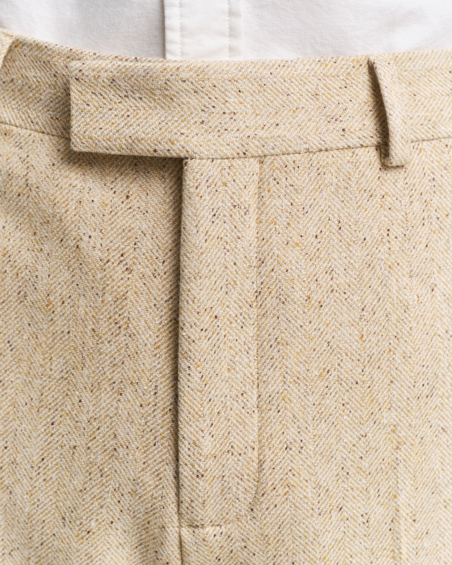 Featuring a herringbone weave, these suit pants have been woven from a premium Italian wool blend with visible nepps effect. They are designed in a relaxed fit with a mid-rise waist and straight leg that's tapered below the knee. They're detailed with front slanted pockets, press creases, belt loops, a hook-and-bar closure and a single welt pocket at the back. These suit pants will work with smart and casual outfits alike and with the matching blazer for a coordinated set.