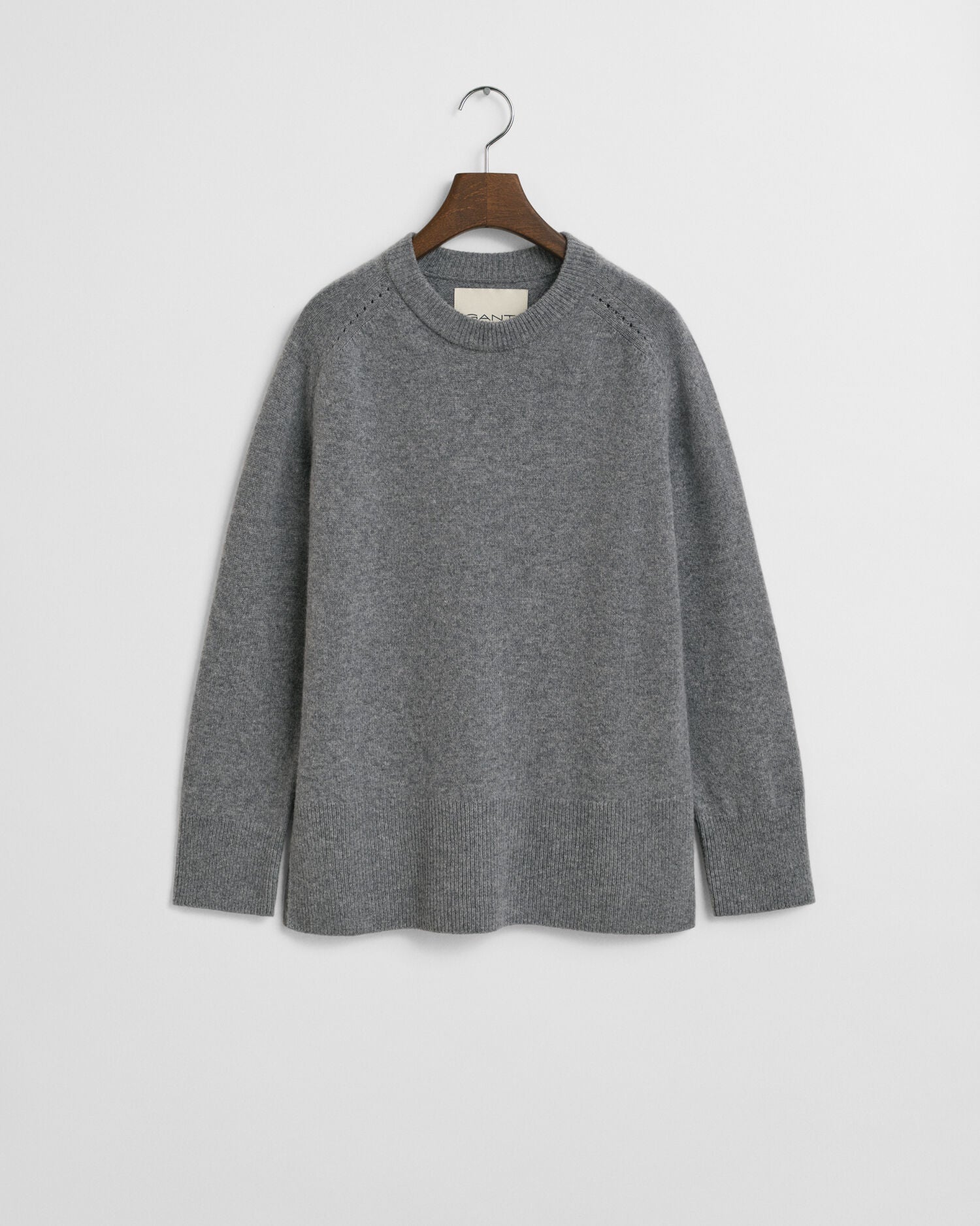 Perfect for every day, this crew neck sweater is crafted from a soft Italian wool and cashmere blend and designed with a relaxed fit. Detailed with a logo embroidery above the wrist, the design features wide sleeves, high ribbing at the sleeves and bottom hem as well as side slits for a flattering silhouette. This garment is intended for a relaxed fit. For a closer fit, we recommend sizing down.