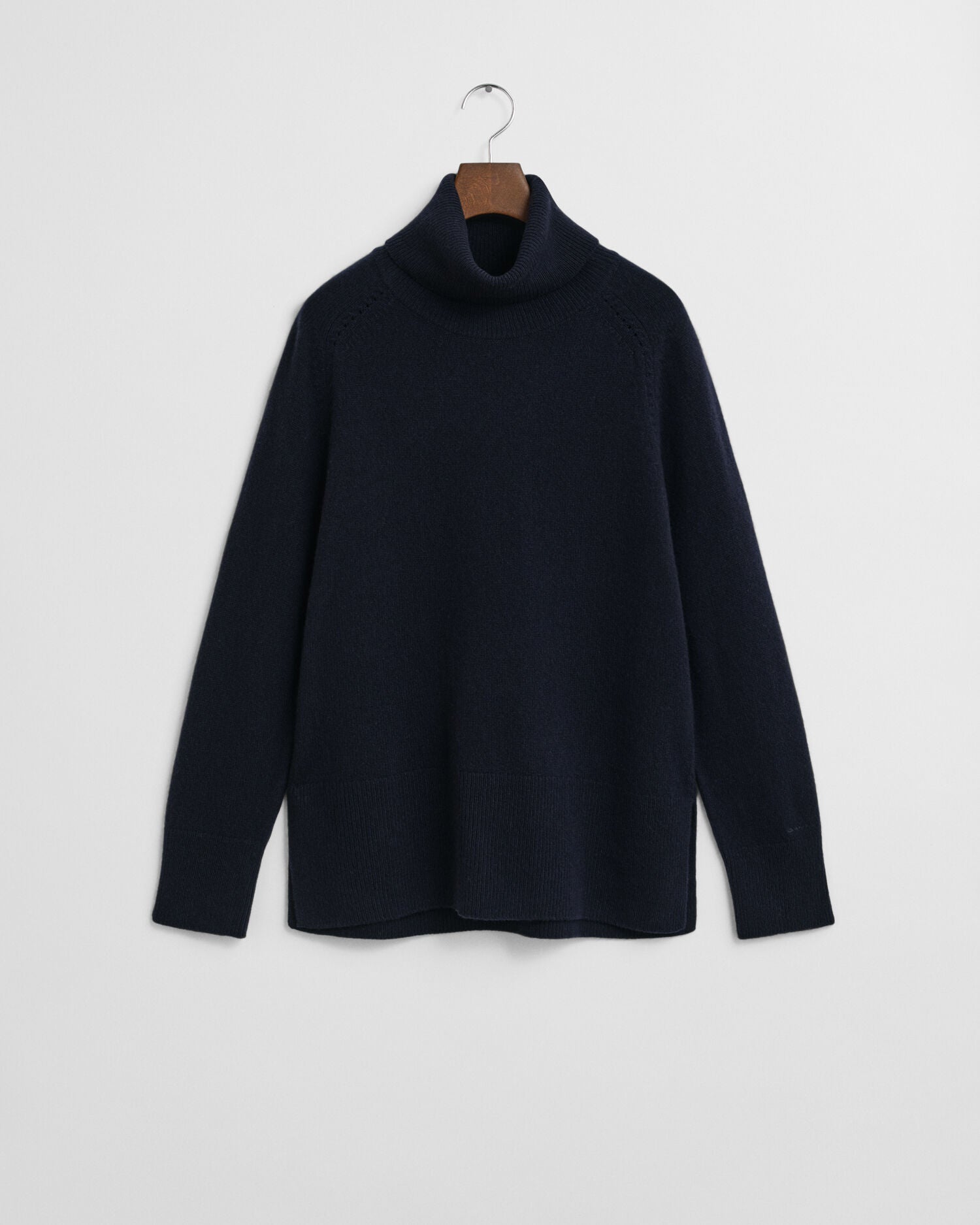 Perfect for every day, this turtleneck sweater is crafted from a soft Italian wool and cashmere blend and designed with a relaxed fit. Detailed with a logo embroidery above the wrist, the design features wide sleeves, high ribbing at the sleeves and bottom hem as well as side slits for a flattering silhouette. This garment is intended for a relaxed fit. For a closer fit, we recommend sizing down.
