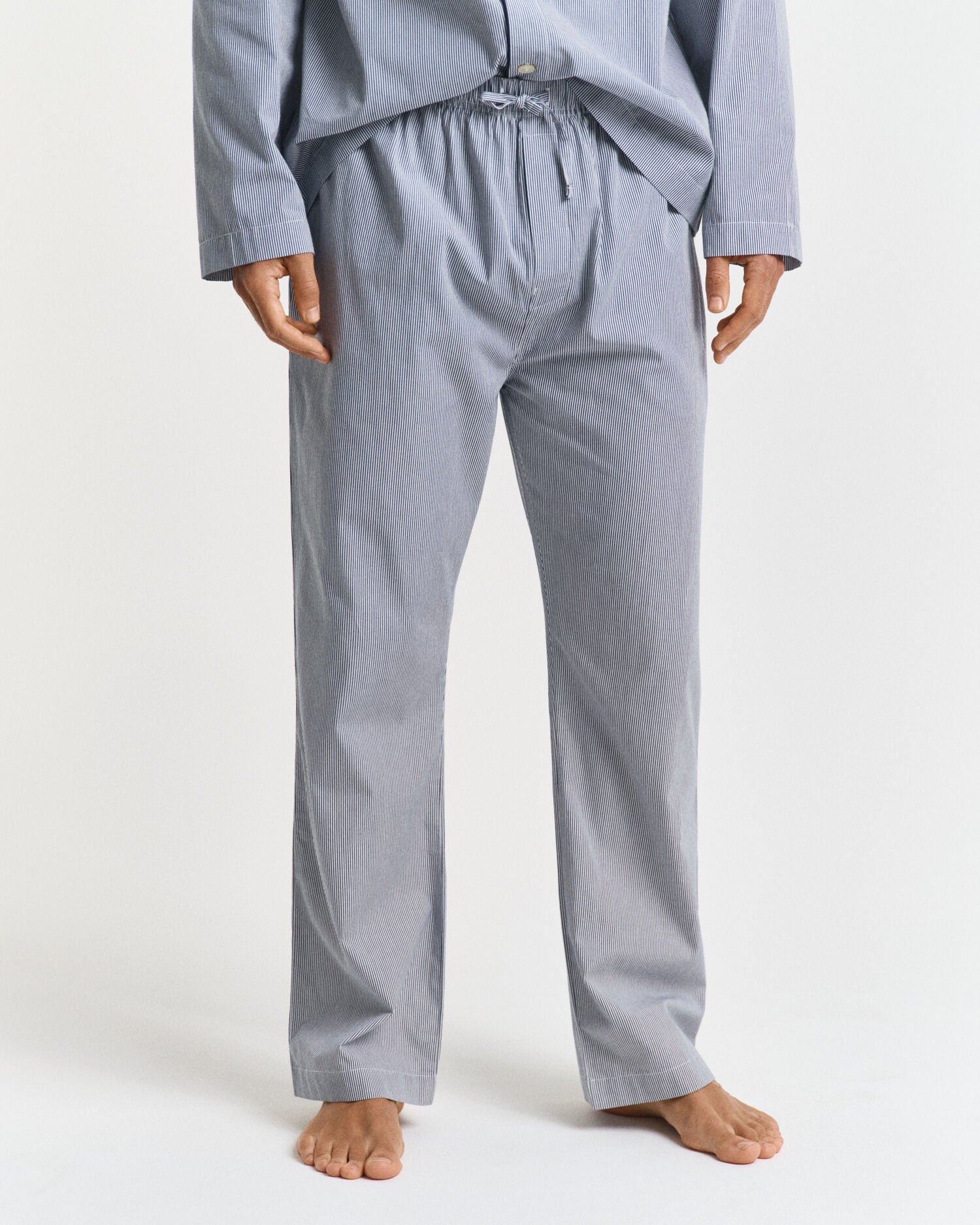 Crafted from washed cotton poplin for a soft feel, this pajama set is patterned with a woven stripe. The set includes a long-sleeved button shirt and drawstring pants. The shirt is detailed with contrast piping at the collar and a chest pocket featuring our iconic Archive Shield graphic embroidered at the front. The pants are fashioned with side seam pockets and a drawstring elastic waistband.