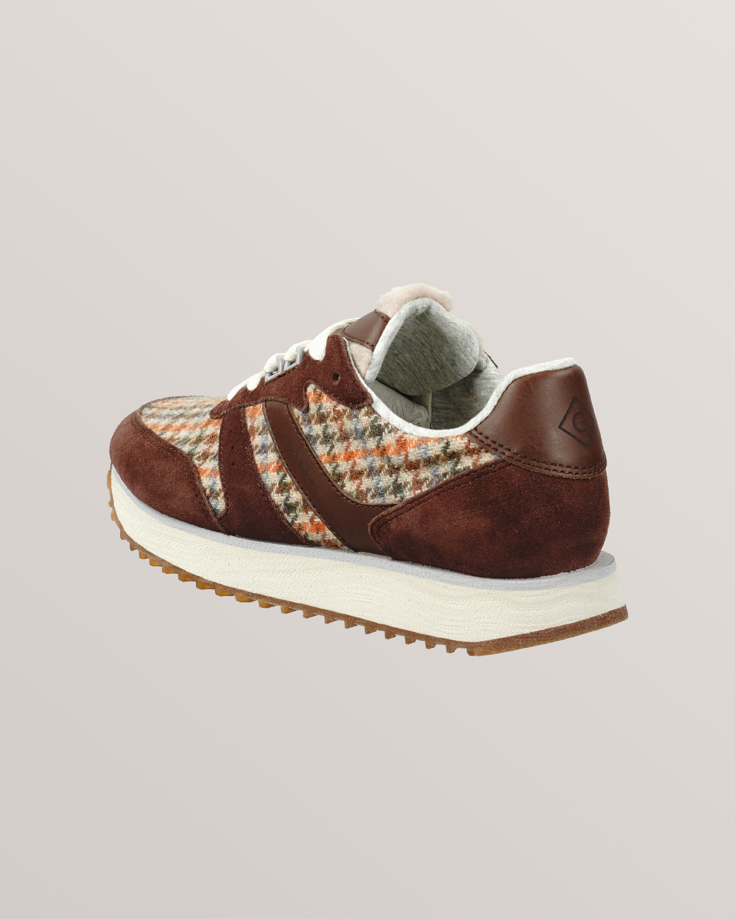 Our classic runner in an interesting material combination of suede and wool flannel with subtle lettering and soft rubber outsole for maximum comfort. With a soft textile lining made from recycled material and a leather-covered removable insole made from recycled material. With the purchase of this shoe you support sustainable leather production.